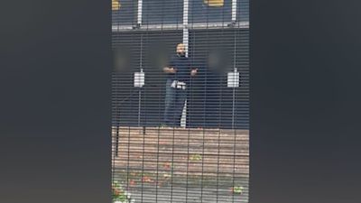Firearms officers warn people to move back as an onlooker warns, “He’s got a bomb on him.” Moments later a shot rings out.