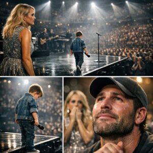 In the glittering world of country music, where every note, light, and gesture is meticulously planned, some of the most profound moments arise from pure spontaneity. Such was the case during a recent Carrie Underwood concert, where what began as a rehearsed family duet transformed into an unforgettable display of vulnerability, love, and familial bond. Everyone in the arena thought they knew what was coming—a sweet, safe performance featuring the superstar and her young son. But halfway through the song, something shifted, turning a planned highlight into a raw, emotional pinnacle that left 18,000 fans breathless.