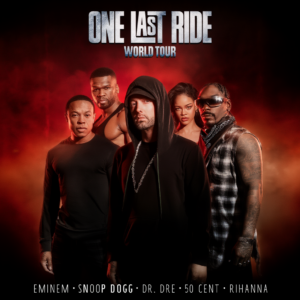 The music world is buzzing with excitement over the viral announcement of “ONE LAST RIDE” — a purported 2026 global world tour uniting hip-hop and R&B titans Eminem, Snoop Dogg, Dr. Dre, 50 Cent, and Rihanna. Described as a seismic, once-in-a-generation event, this supposed reunion promises to deliver epic collaborations, era-defining anthems, and unforgettable live moments that could redefine hip-hop history.