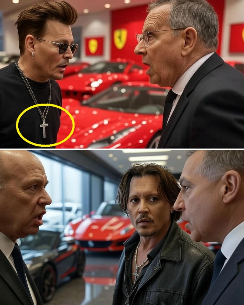 In the glitzy heart of Beverly Hills, where luxury cars gleam and egos shine brighter, a Ferrari dealership became the unlikely stage for a viral showdown on April 21, 2025. Johnny Depp, the enigmatic Hollywood icon known for his eclectic style and generous spirit, walked into Elite Ferrari Motors to inquire about a custom upgrade for his red Ferrari 488 Spider. But what should have been a routine visit turned into a clash of prejudice and redemption when a smug salesman insulted Depp’s cross necklace, unaware he was mocking a global superstar. The fallout, captured on video, has ignited a firestorm online, proving once again that judging a book by its cover can come with a steep price.